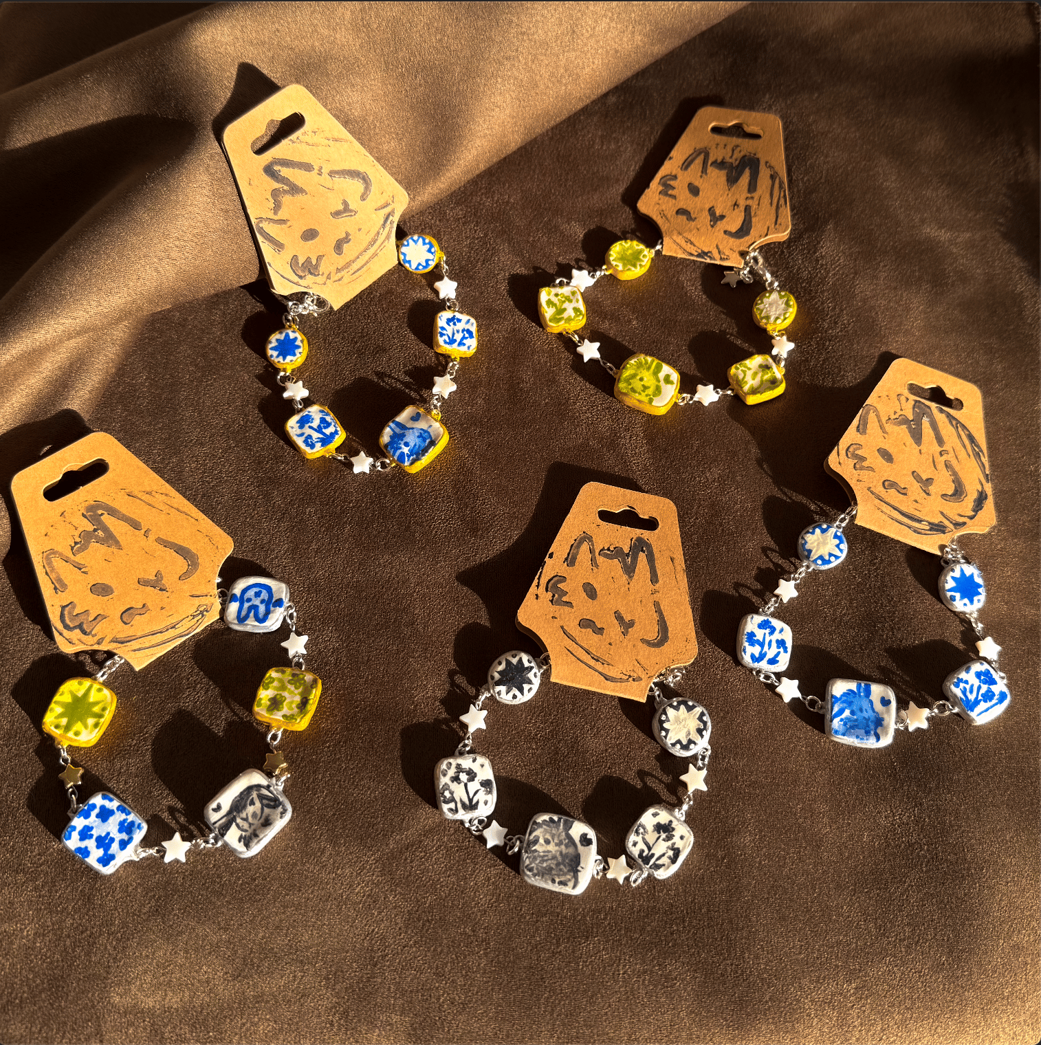 5 charms combined with silver fixings and star beads.